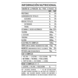 Suplemento dietario en polvo con aminoácidos esenciales (EAA’s), minerales y vitamina C sabor limón. 0 % carbohidratos, sin azúcar, endulzado naturalmente con stevia, libre de gluten, sin T.A.C.C., y apto para vegetarianos/veganos. Ideal para mejorar rendimiento, recuperación y mantenimiento muscular en tus entrenamientos