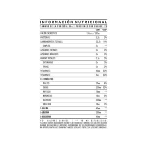 Este producto complementa dietas insuficientes en hidratos, electrolitos y aminoácidos. No utilizar en embarazo o lactancia sin supervisión médica. Menores de 18 años consumir bajo supervisión de adulto o profesional de la salud.