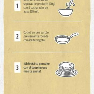 Mezclá la premezcla con agua hasta lograr una consistencia homogénea, cociná en sartén de ambos lados y disfrutalo con tus toppings favoritos: frutas, yogur, mantequilla de frutos secos, etc.