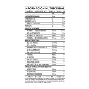 Su fórmula combina 8 ingredientes activos clave, incluyendo beta alanina, citrulina, arginina y cafeína, que trabajan en conjunto para brindarte mayor energía, resistencia y enfoque.