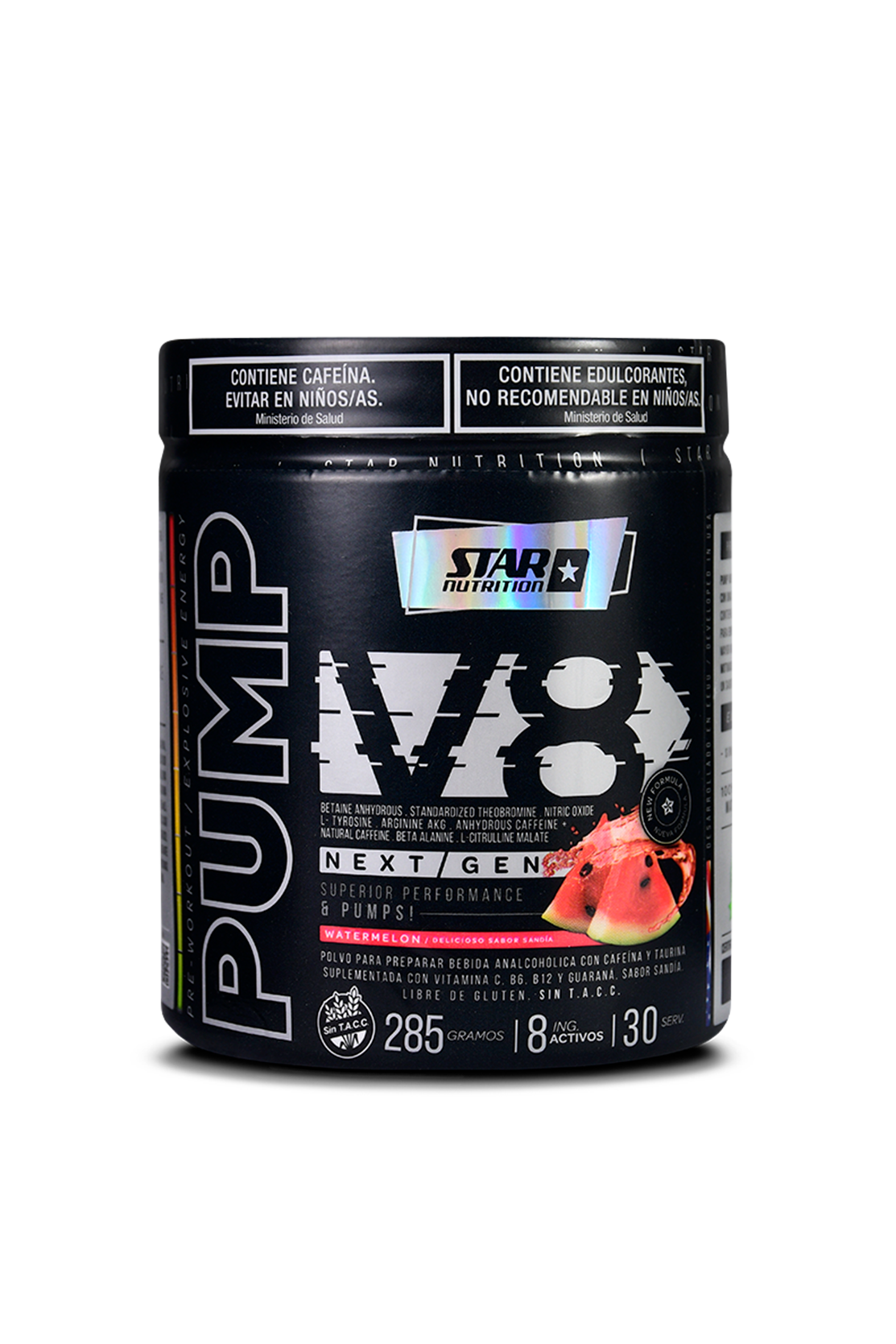 El Pump V8 285 g de Star Nutrition es un pre-entreno formulado para maximizar tu rendimiento, mejorar la concentración y potenciar el bombeo muscular en cada entrenamiento.