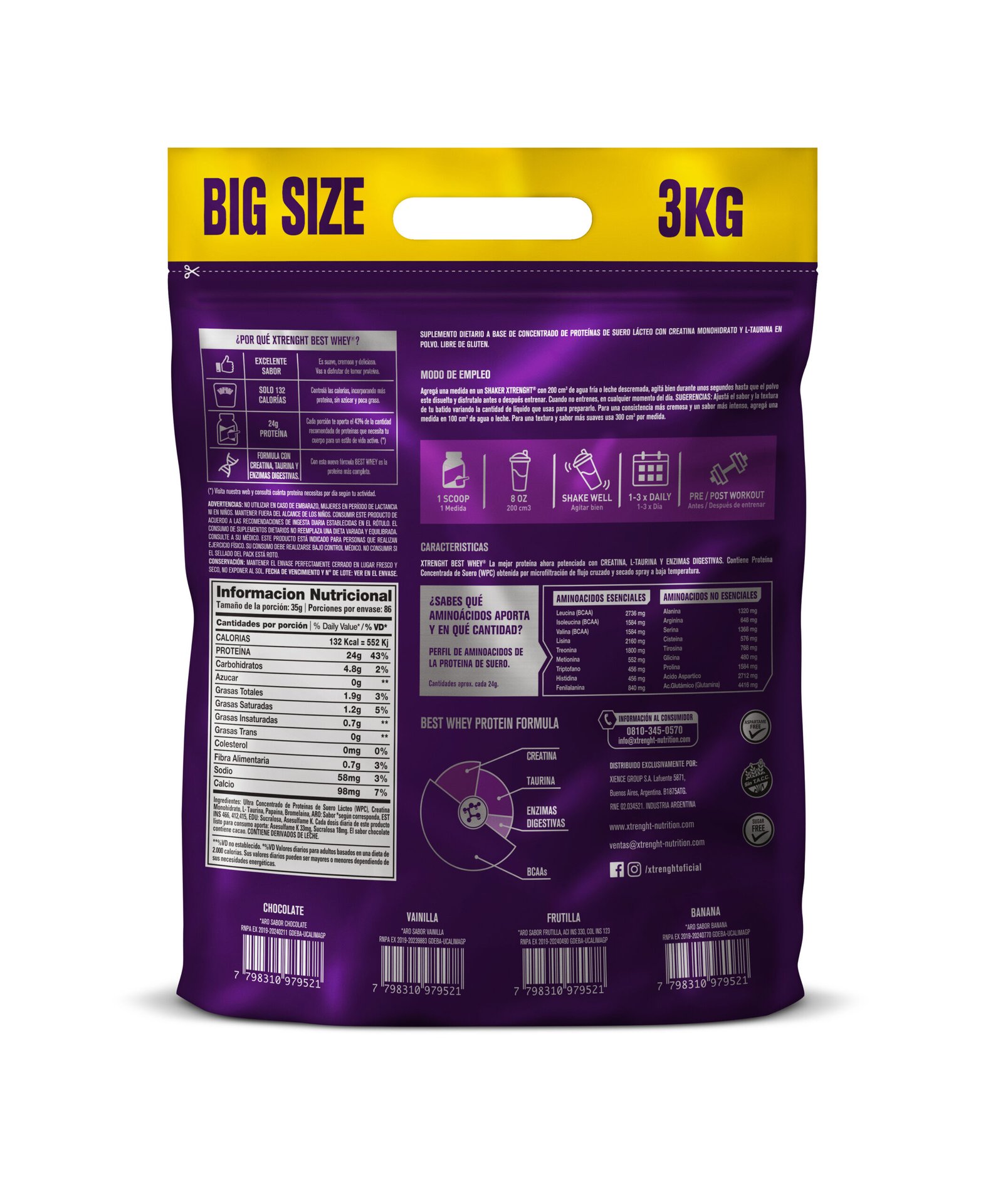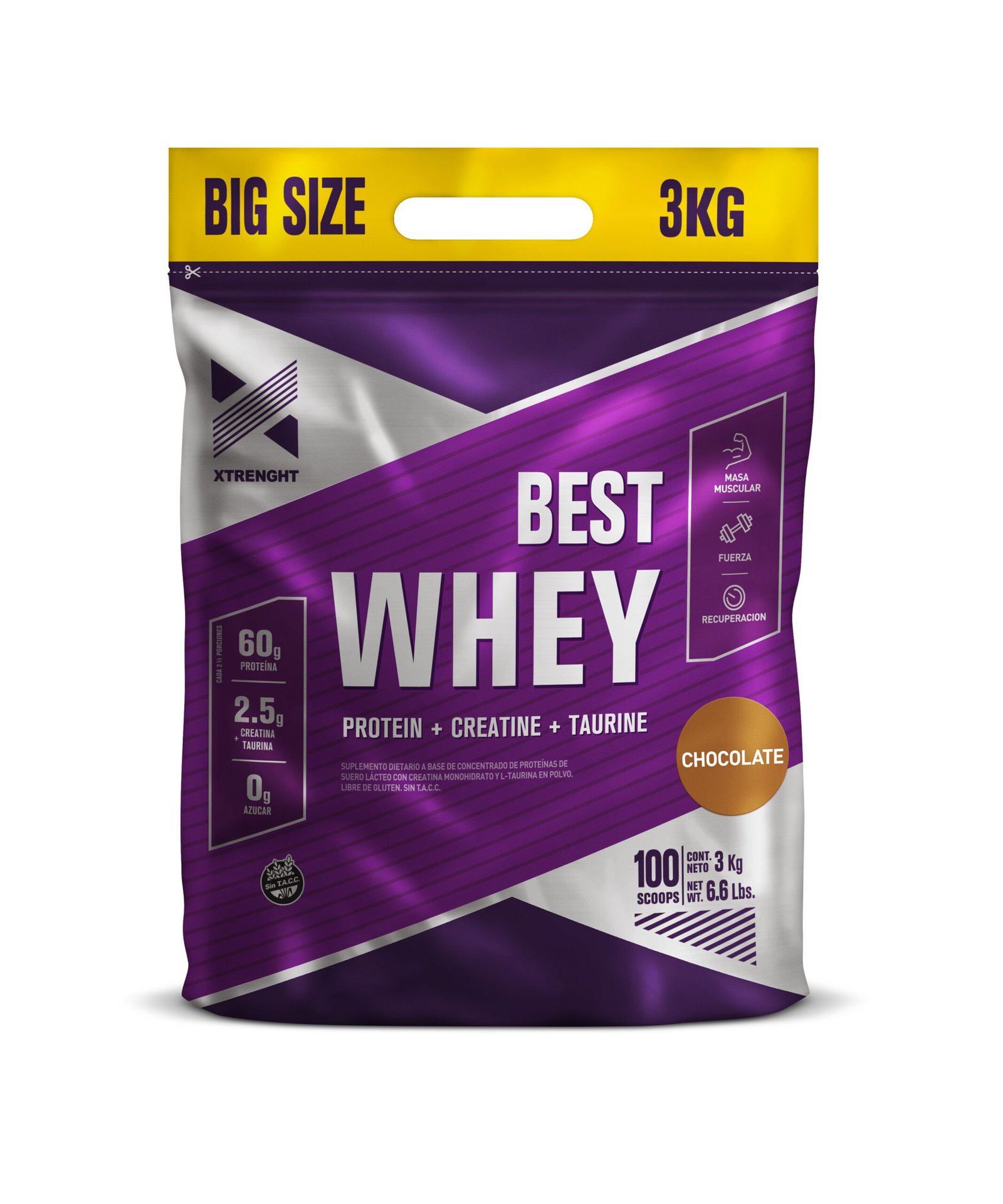 Presentación BIG SIZE de la proteína Xtrenght Best Whey. Contribuye al desarrollo muscular, recuperación post-entreno y mantenimiento de masa magra.